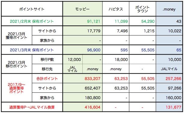 貯めたポイント及びマイルについて