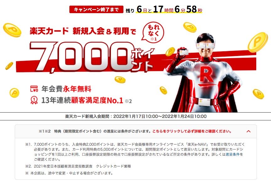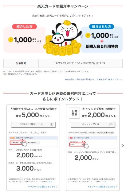 ※楽天カードが個別実施している