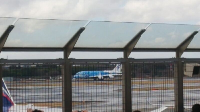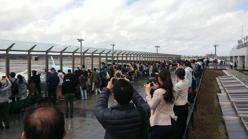 機内に入る前に記念撮影しているので